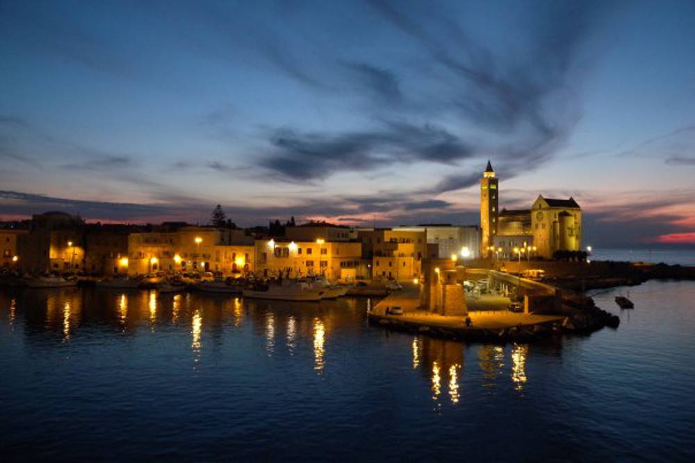 La città è situata sulla costa adriatica 42 km a nord di Bari. Grazie alla sua storia millenaria, la città di Trani può fregiarsi del titolo di città d'arte e vantare un ampio patrimonio artistico e architettonico: oltre alla celeberrima Cattedrale sul mare di San Nicola Pellegrino e al Castello Svevo, la città è ricca di chiese e monasteri, oltre che di pregevoli palazzi storici. Il porto turistico, anch'esso di origini molto antiche, fa da cornice alle splendide bellezze artistiche della città