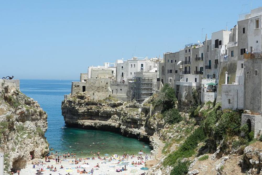Paese natale di Domenico Modugno, a cui è anche stata dedicata una statua, il nucleo più antico della cittadina sorge su uno sperone roccioso a strapiombo sul mare Adriatico. Di notevole interesse naturalistico sono le sue grotte marine e storicamente importanti sono il centro storico e i resti della dominazione romana. Tra questi ultimi il ponte della via Traiana, tuttora percorribile, che attraversa Lama Monachile. Dal 2008, Polignano a Mare ha sempre ricevuto la Bandiera Blu ed inoltre nel 2014 il paese è stato insignito con 4 vele Legambiente, riconoscimenti relativi ai parametri delle acque di balneazione e al servizio offerto ai turisti.